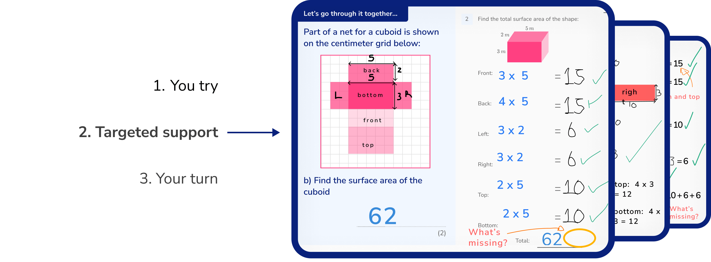 Tutors use formative assessments to adapt the pathway through each lesson, providing opportunities to recap prior learning if pupils need or skipping straight to independent practice if they’re ready.